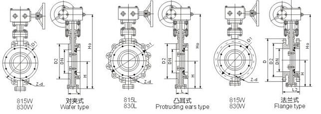 本產(chǎn)品815、830系列蝶閥的主要結(jié)構(gòu)特征為對(duì)夾式和法蘭式三偏心結(jié)構(gòu),而815、830L系列蝶閥的主要結(jié)構(gòu)特征為閥體周邊帶凸耳且設(shè)計(jì)成帶螺孔單法蘭結(jié)構(gòu)。815、830系列蝶閥廣泛應(yīng)用于石油、化工及工業(yè)環(huán)保水處理、高層建筑、給排水等管道上。其特點(diǎn)為:由于采用的是三偏心結(jié)構(gòu),密閉性能可靠,確保開啟時(shí)蝶板不接觸密封座,消除了密封座不均勻負(fù)載,延長了使用壽命、確保可靠的密封性能,具有耐高溫、耐磨損、耐腐蝕等優(yōu)點(diǎn)。