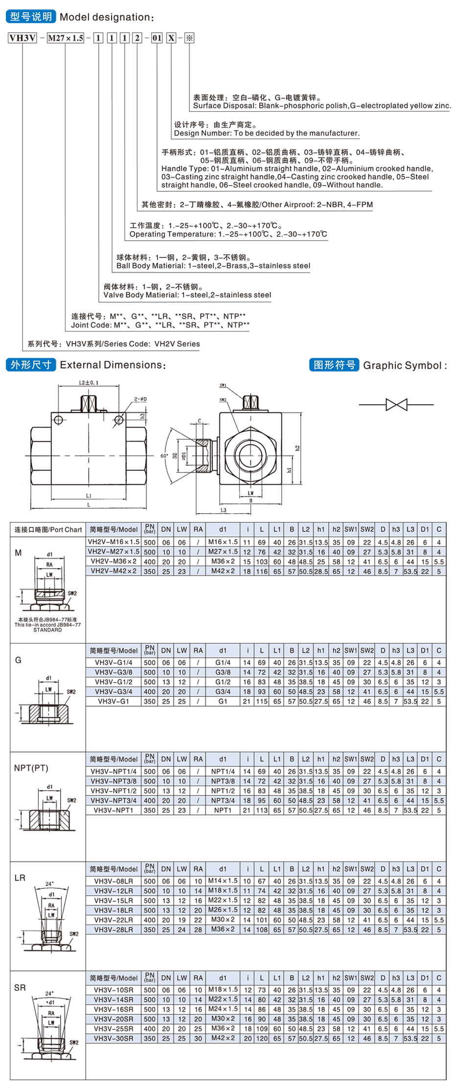 ② 連接代號(hào):M** 、G** 、 **LR 、**SR、PT**、NPT**